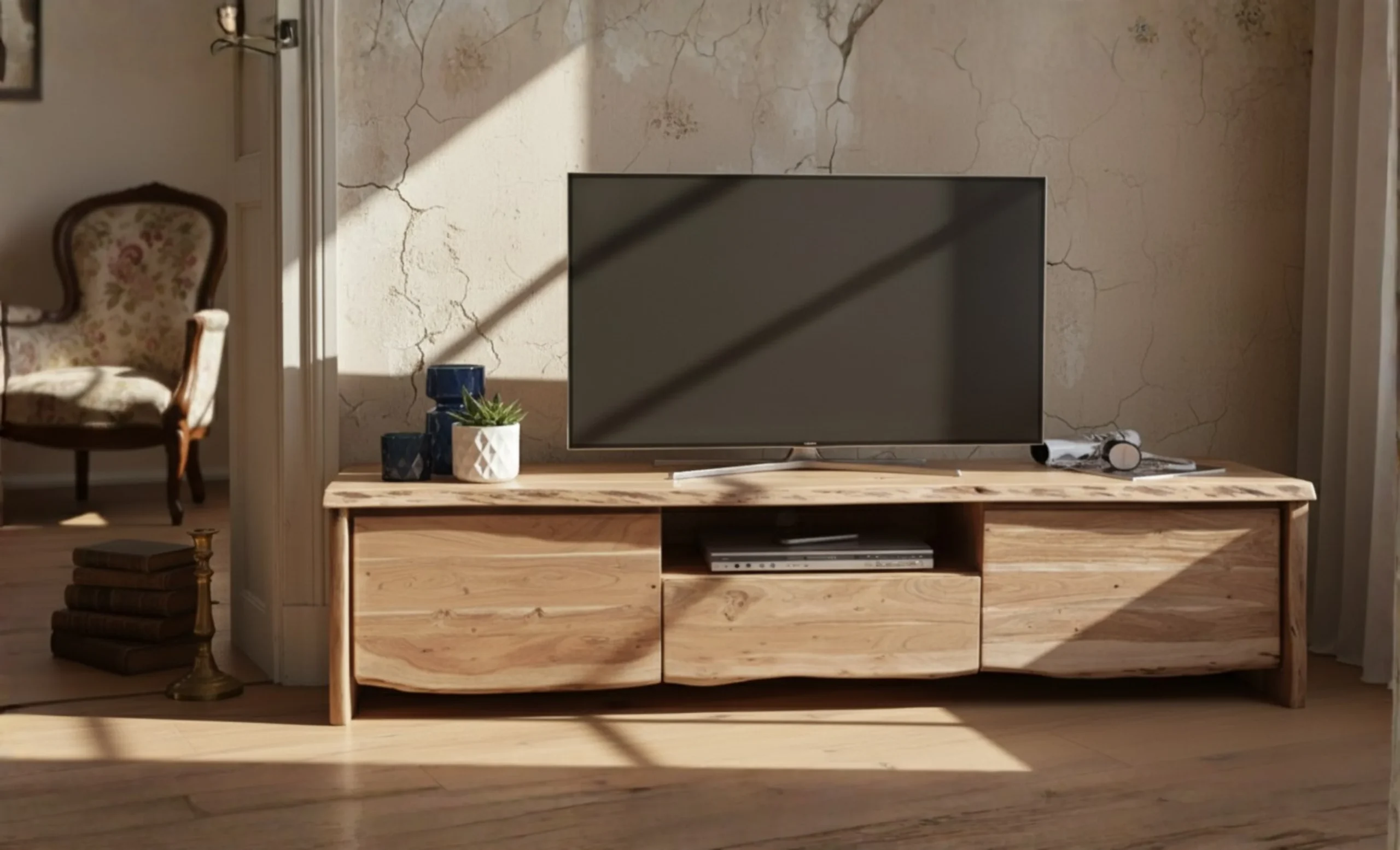 Wooden Live Edge T.v. Cabinet in Natural Finished